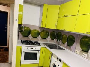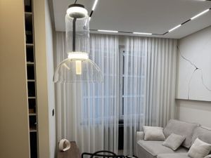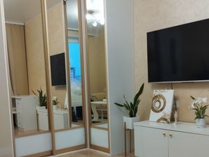 В квартире сделан качественный ремонт. Просторная кухня- гостиная с большим обеденным столом и панорамным балконом, кухонным гарнитуром с встроенной техникой(посудомоечной машиной), из гостиной вход в светлую комнату 16кв.м с двумя окнами и кондиционером., из нее вход в уютную спальню. В квартире есть все самое необходимое для комфортного проживания.