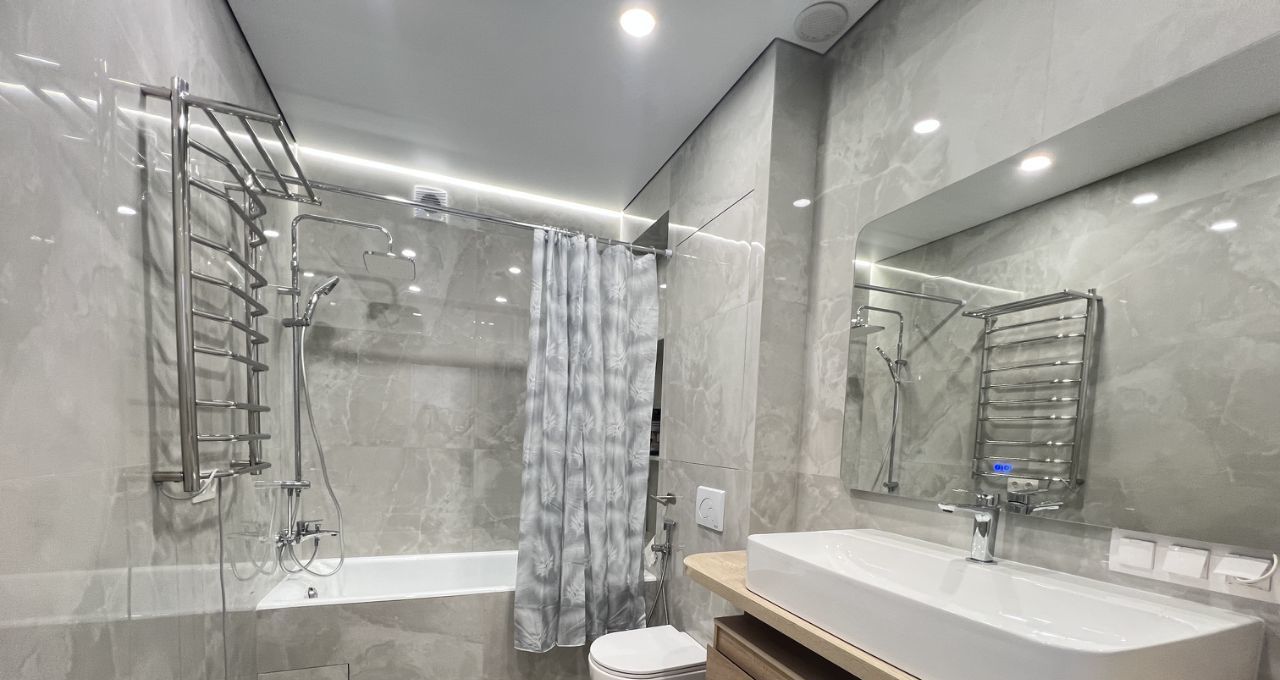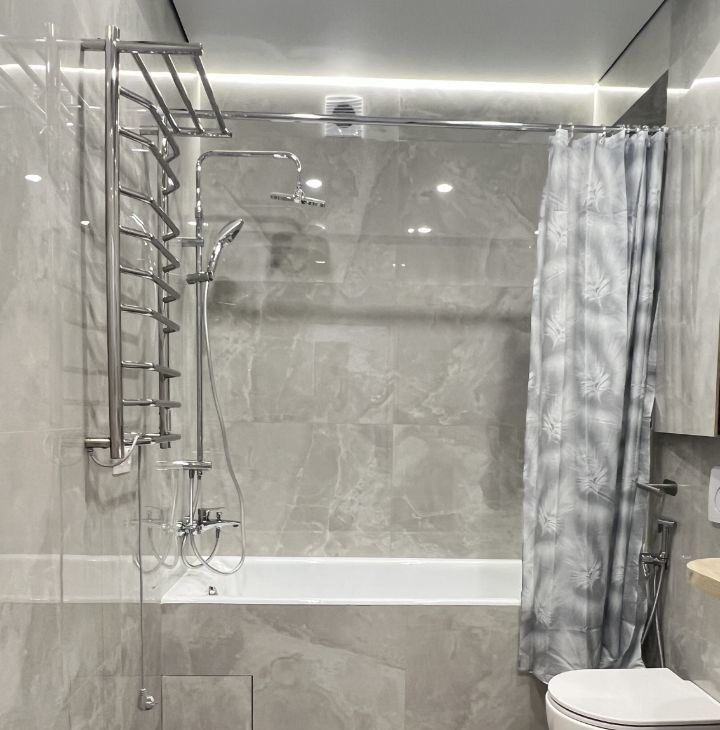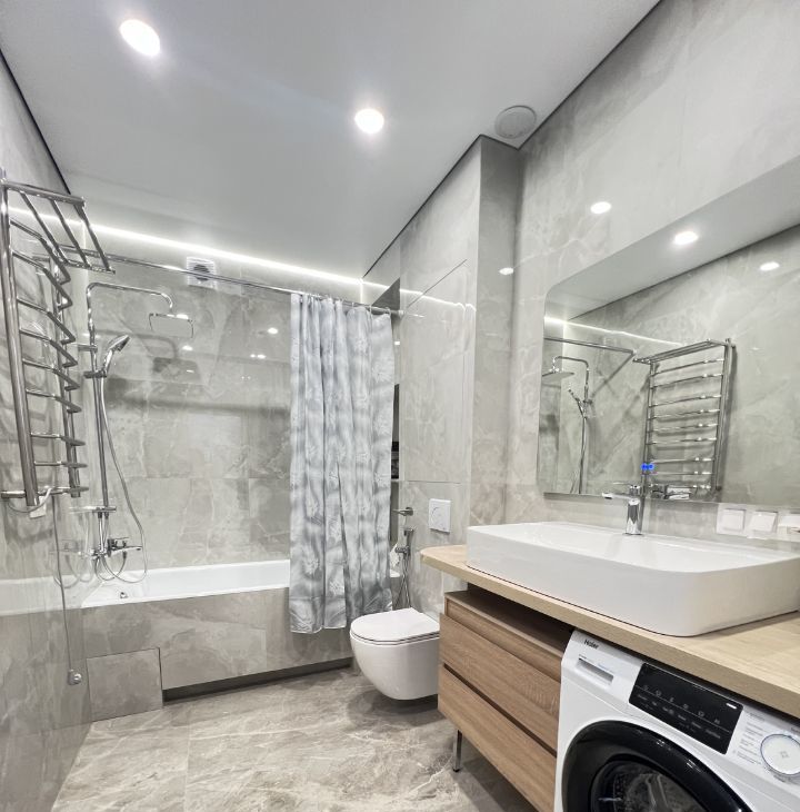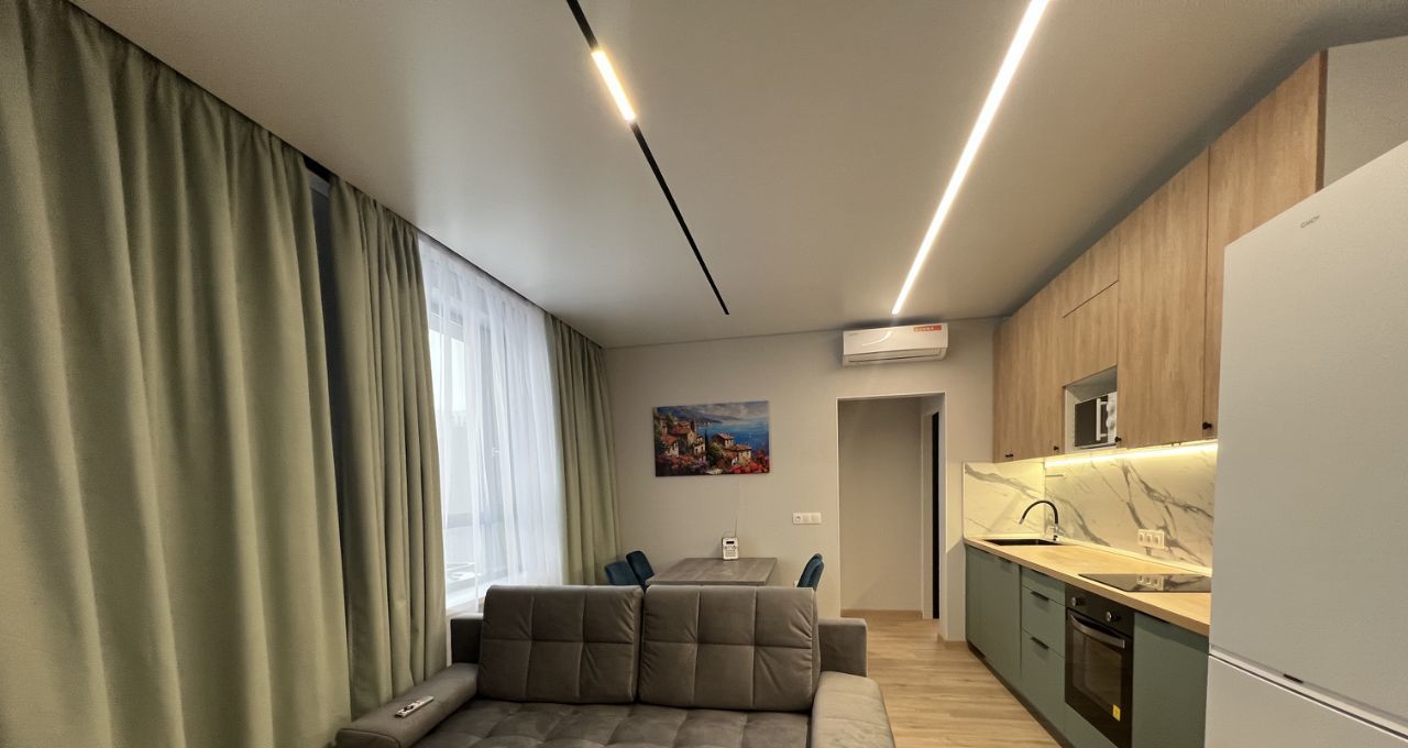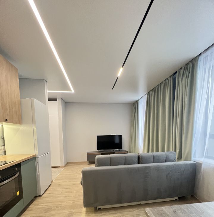 В квартире выполнен шикарный евро-ремонт, никто не жил, сдается впервые. Просторная кухня-гостиная разделена на зону отдыха и кухонную зону, которая полностью меблирована и оснащена всей необходимой техникой: кондиционер, холодильник, посудомоечная машина и телевизор. В комнатах также есть вся необходимая мебель мебель, поэтому можно сразу заезжать и жить.