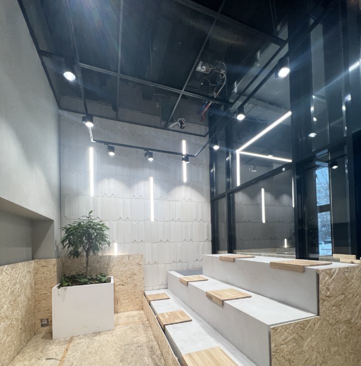 Территория двора ДОМА KINETIK — игровые и спортивные площадки, зоны для работы на свежем воздухе и совместного времяпровождения, летний кинотеатр и сцена (площадка для йоги), крытая стоянка для велосипедов и даже небольшой собственный лаунж.