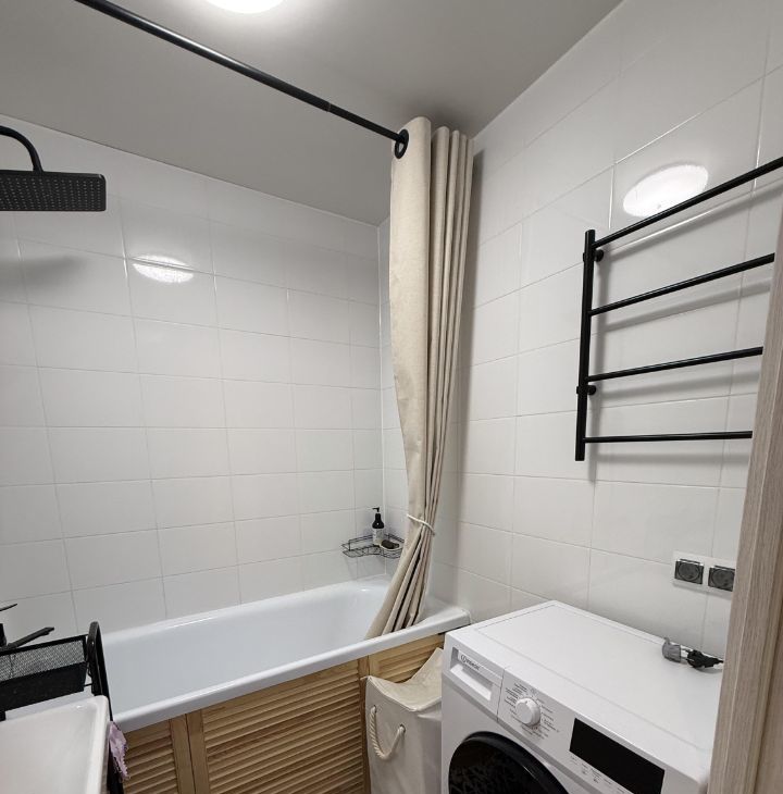 В квартире выполнен качественный евроремонт. Просторная кухня оснащена необходимой мебелью и техникой: холодильник, посудомоечная машина, кондиционер. В комнатах также есть вся необходимая мебель для комфортного проживания. Ванная комната оборудована ванной и стиральной машиной. Для вашего удобства в квартире установлен телевизор и проведен интернет.
