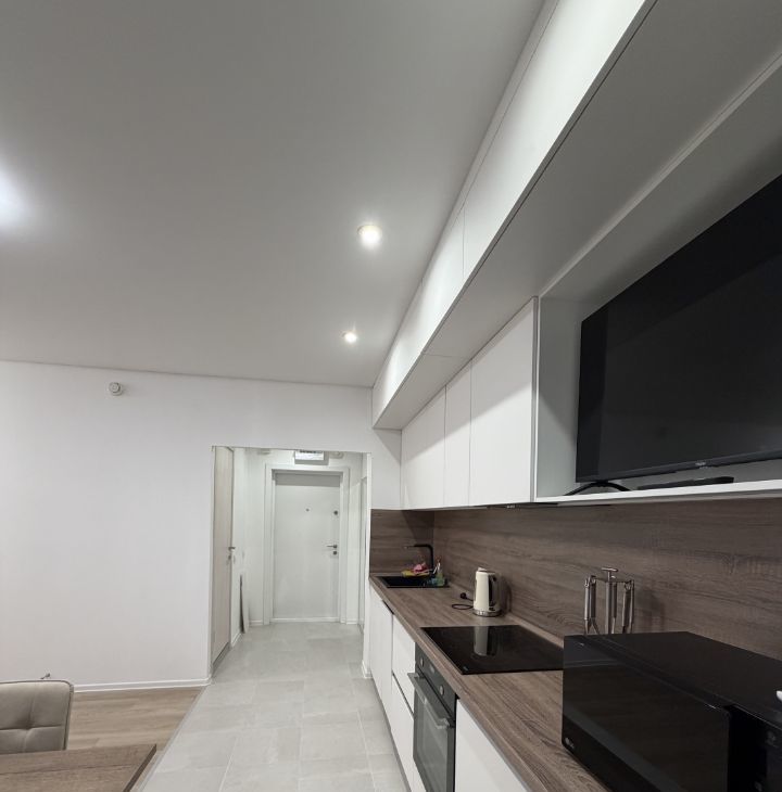 Квартира с евроремонтом, в каждой комнате есть мебель, а кухня площадью 18 кв. м оснащена всей необходимой техникой, включая холодильник, посудомоечную машину и кондиционер. В ванной комнате установлена ванна, а окна выходят как на улицу, так и во двор, поэтому в квартире всегда светло и уютно.