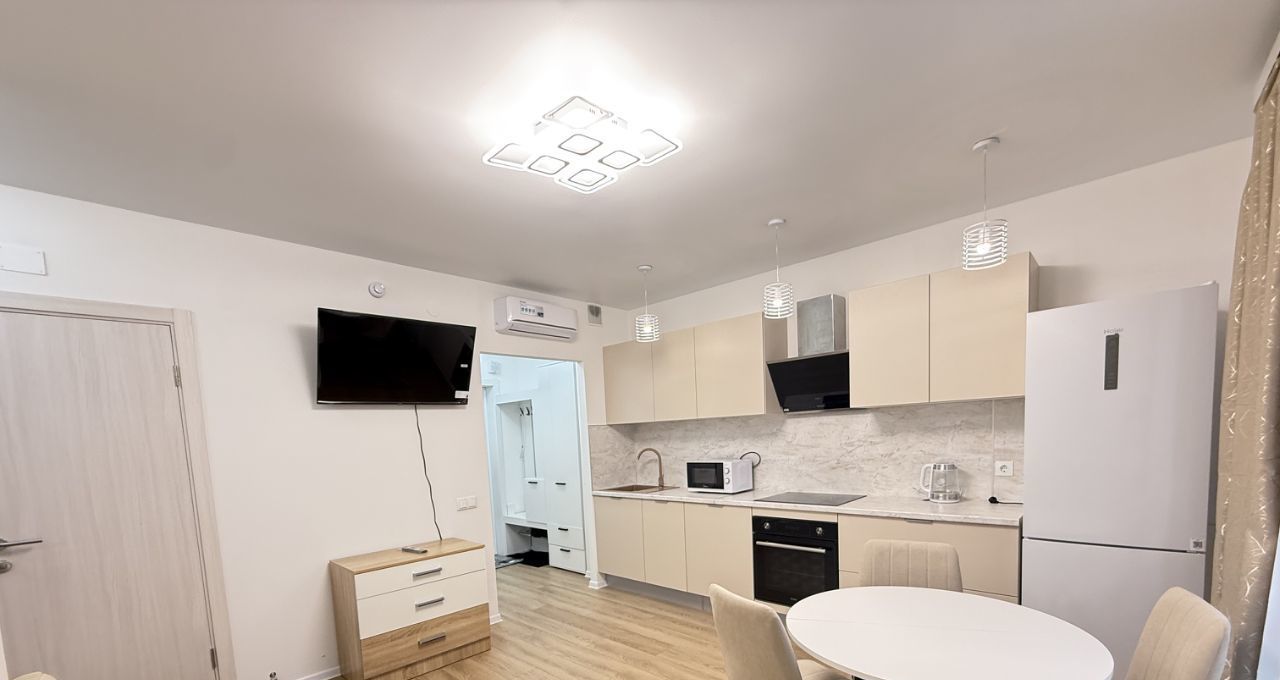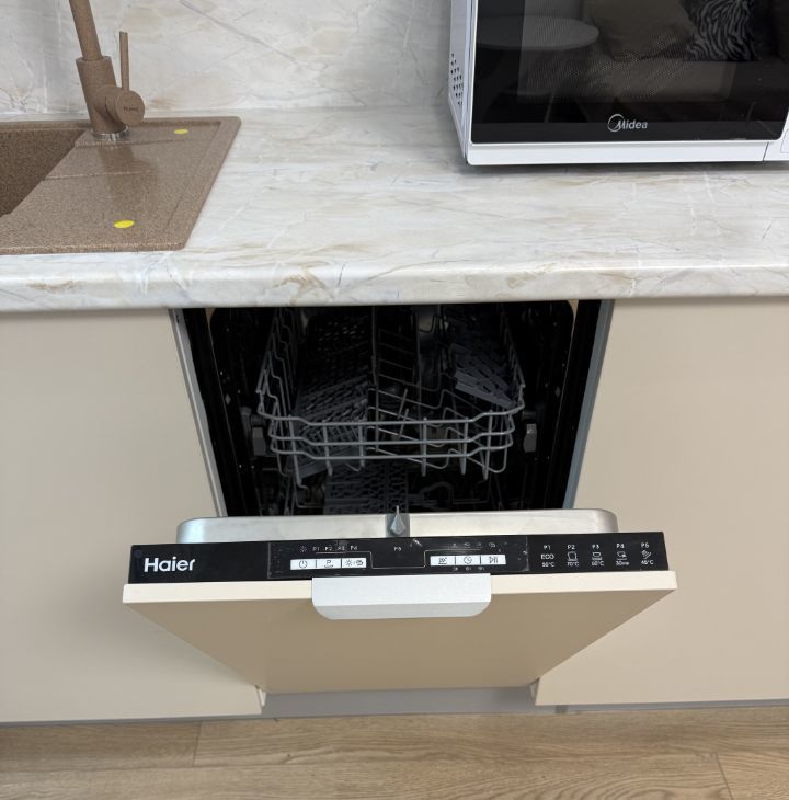 Квартира укомплектована всей необходимой техникой фирмы Haier и мебелью для комфортного проживания.