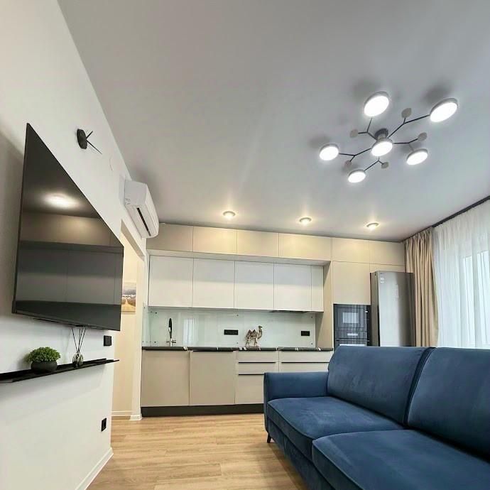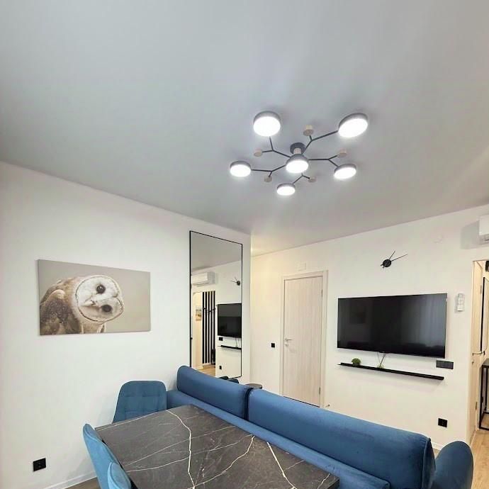 Квартира оборудована всей необходимой мебелью и техникой. Установлен кондиционер, посудомоечная машина, стиральная и сушильная машина, двуспальная кровать с подъемным механизмом, телевизор , холодильник, роутер для Интернета. одна комната пустая - готовы предоставить спальное место по необходимости .
