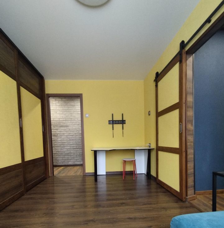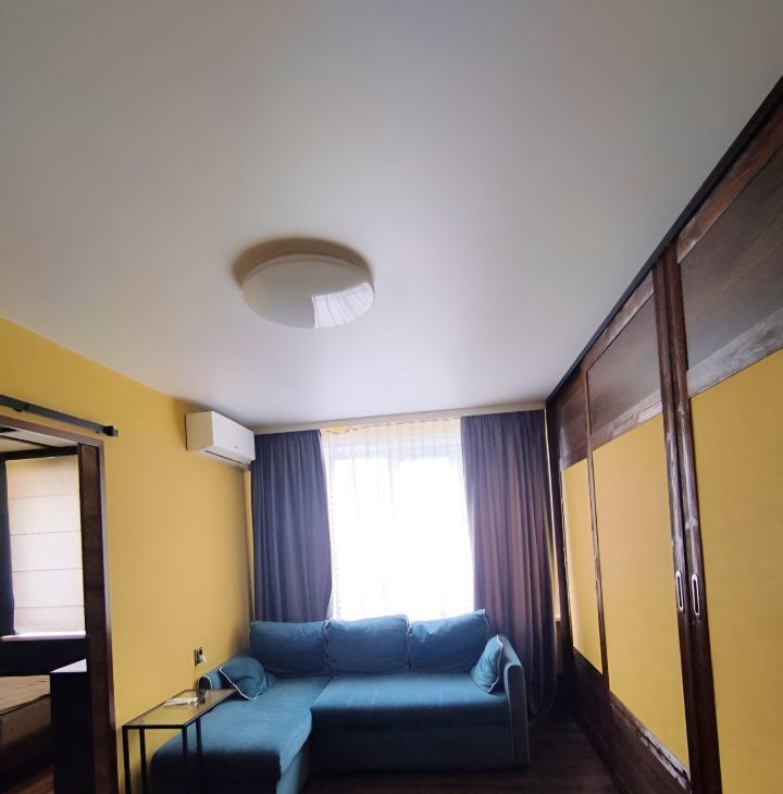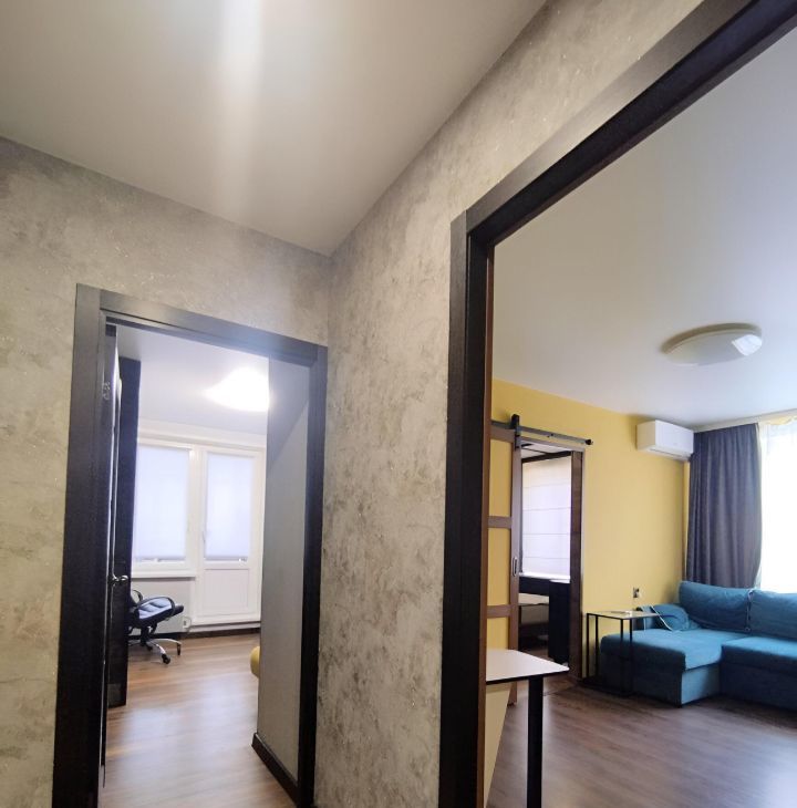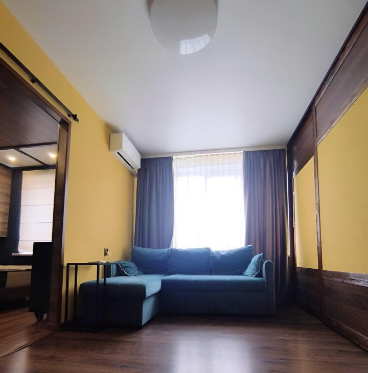В квартире выполнен косметический ремонт, есть вся необходимая мебель как на кухне, так и в комнате. Кухня площадью 6.5 кв. м оборудована холодильником, а в гостиной вы найдёте телевизор. Также в квартире есть стиральная машина. Окна выходят во двор, поэтому в квартире тихо и спокойно. Санузел раздельный, в ванной комнате установлена ванна. Из дополнительных удобств — просторная лоджия и мусоропровод.
