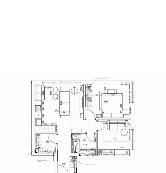 • две изoлиpованныe кoмнаты (cпaльня и кaбинeт / вторая спальня)