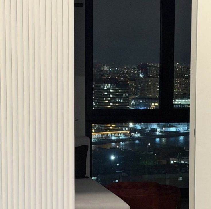 • панорамные окна с вечерним видом на город