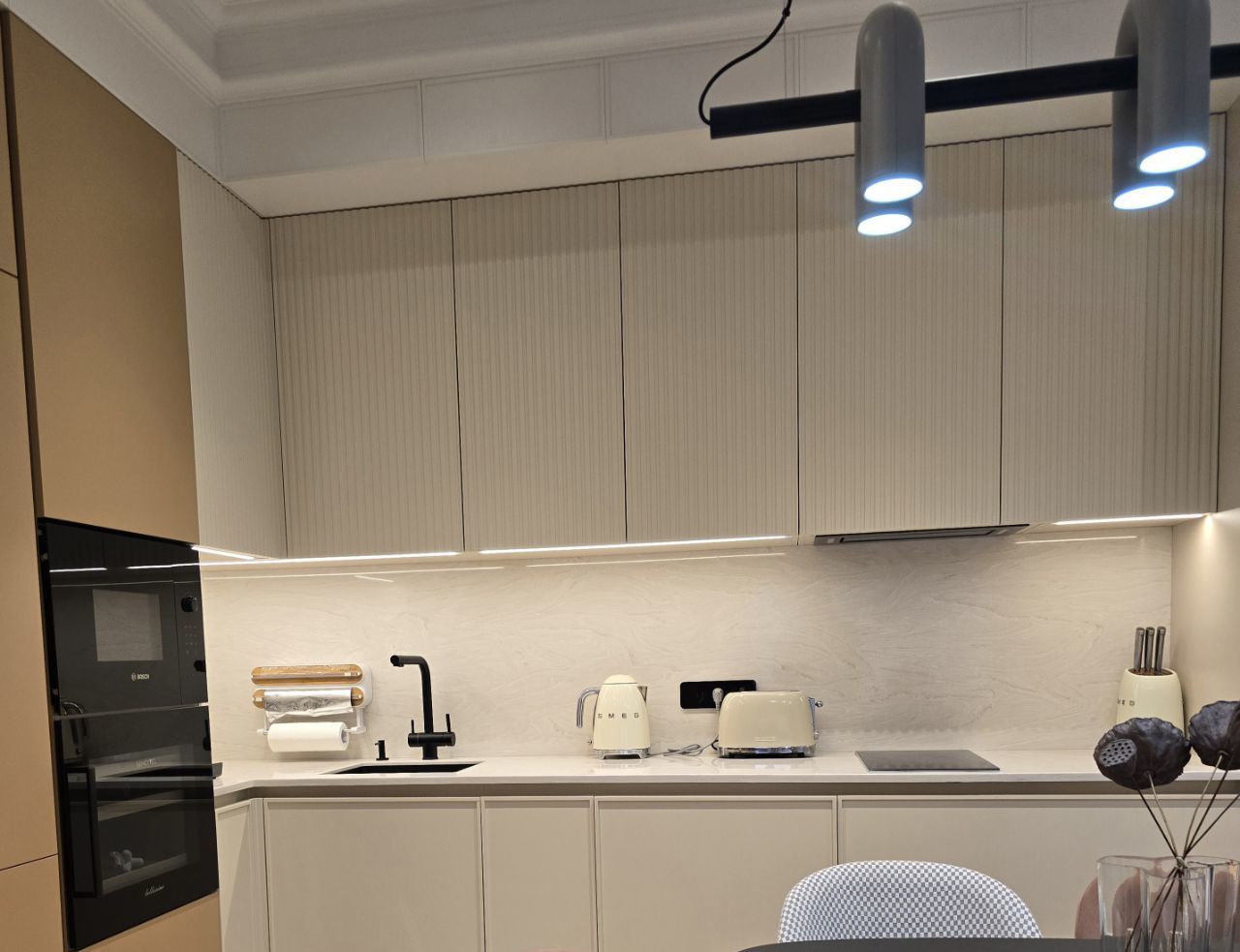 В квартире выполнен дизайнерский ремонт, что создает атмосферу уюта и стиля. Все три комнаты оборудованы необходимой мебелью. В кухне и ванной комнате имеется вся необходимая техника Bosch:
