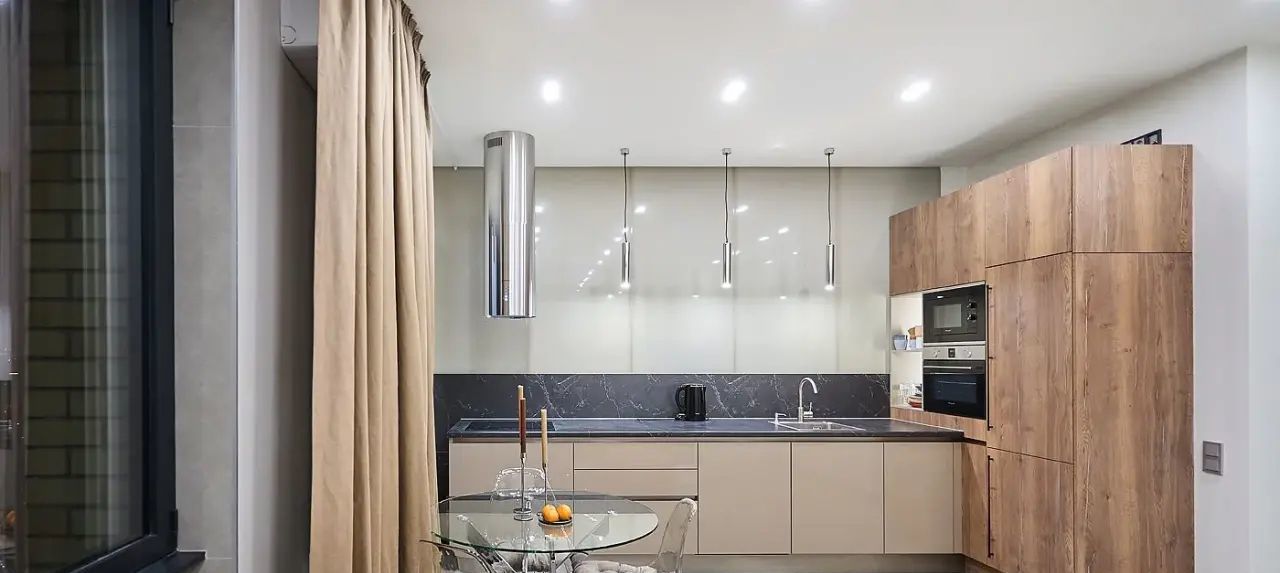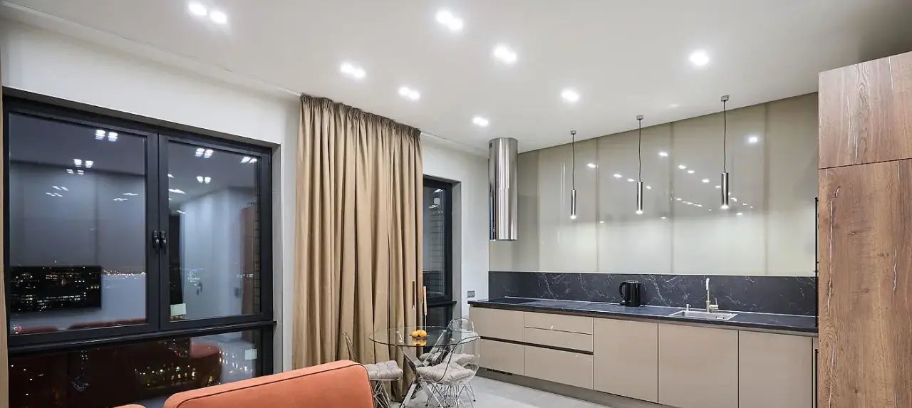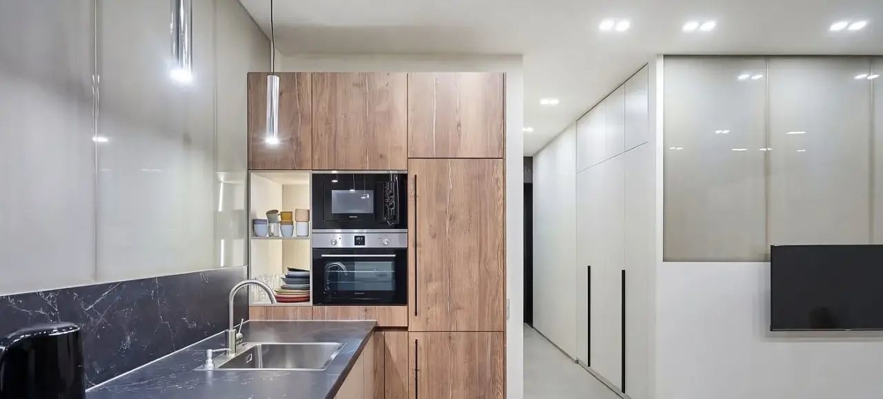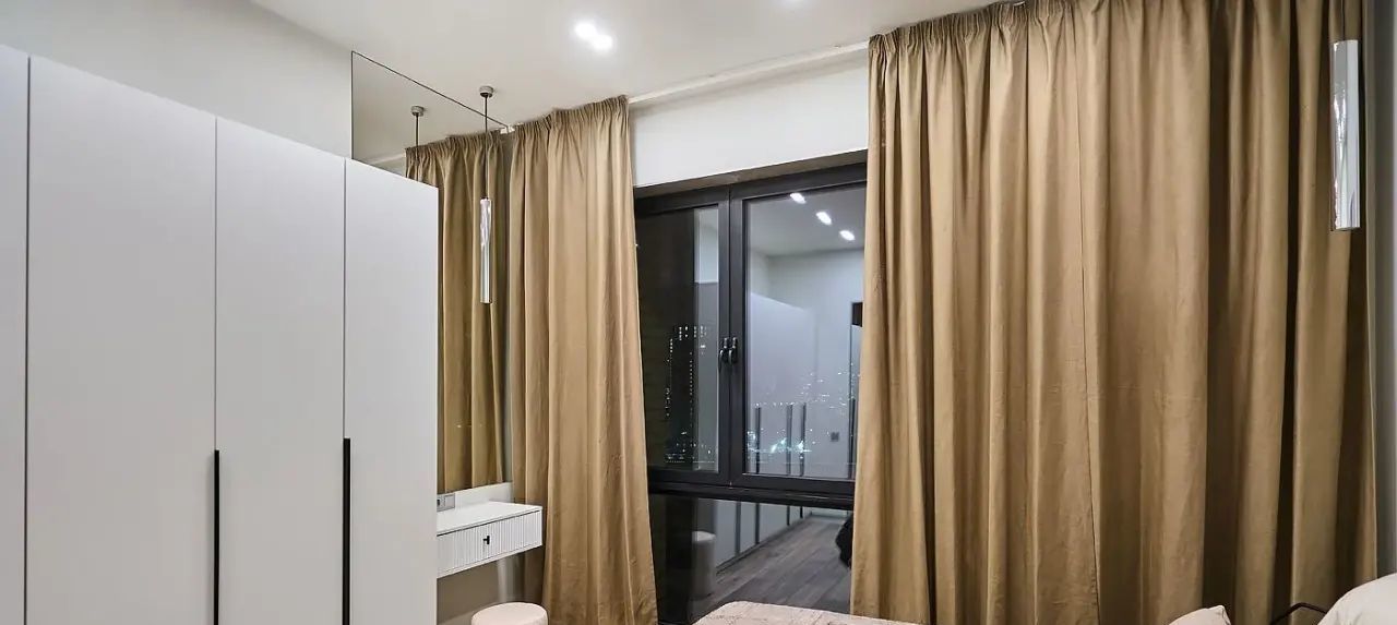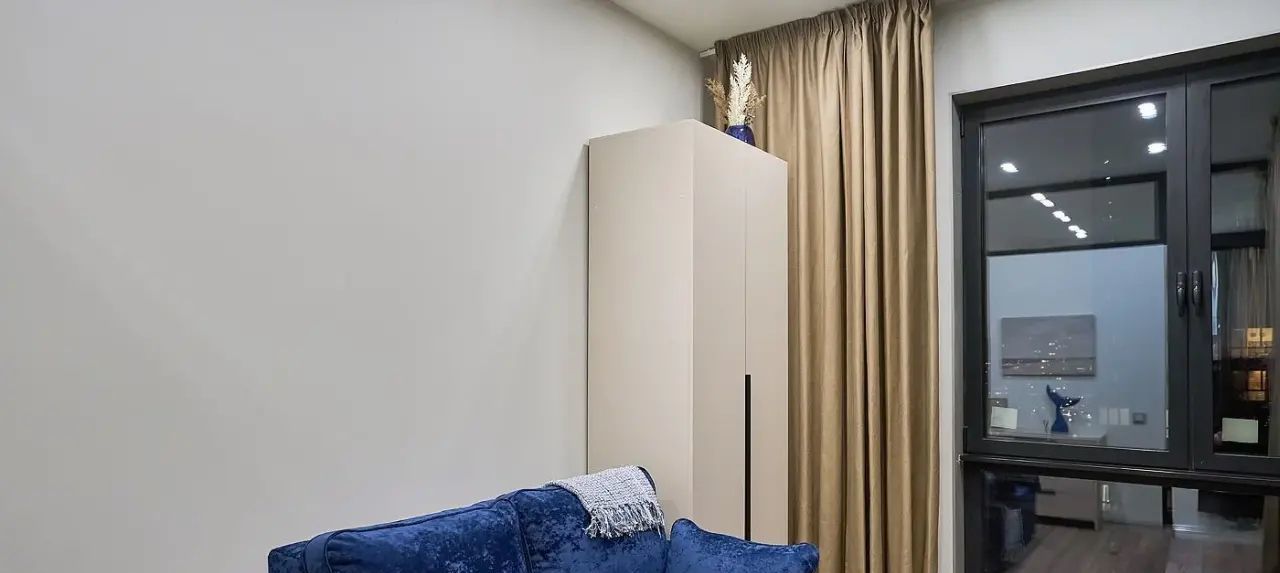Квартира с дизайнерским ремонтом, полностью меблирована и укомплектована современной встроенной техникой: холодильник, посудомоечная машина, индукционная варочная панель, вытяжка, кондиционер. В гостиной — большой раскладной диван и ТВ. В спальне — кровать с новым ортопедическим матрасом. В комнате свободного назначения — раскладывающийся диван, шкаф и комод. В прихожей — большой технический шкаф с установленной стиральной машиной и местом для хранения громоздкой техники.