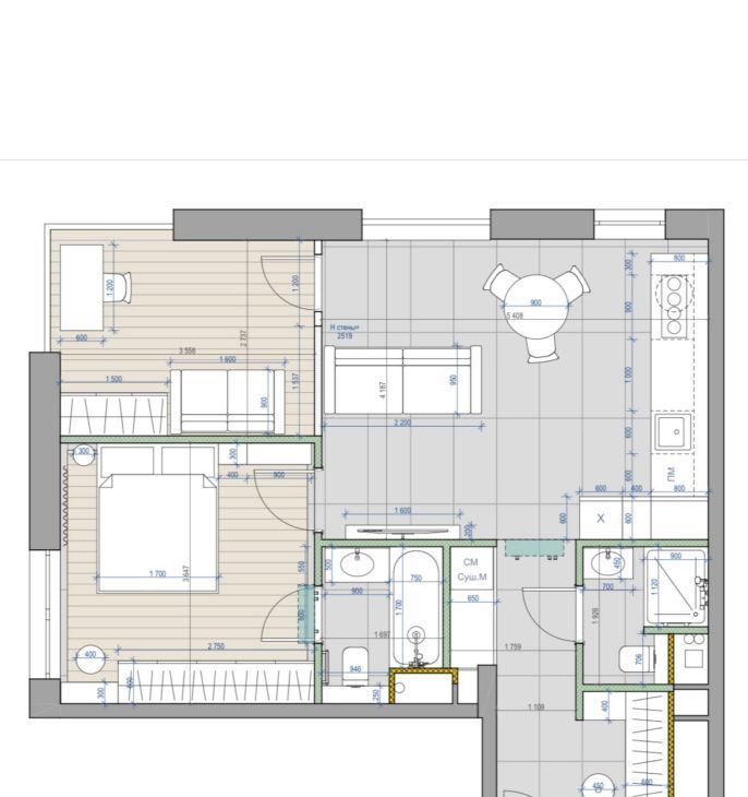 - Две изолированные комнаты: спальня с собственным санузлом и комната свободного назначения (детская или кабинет).