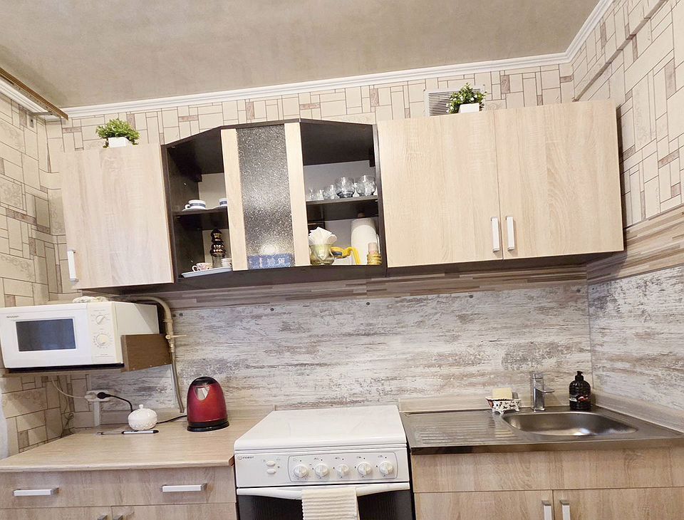 На кухне присутствует вся необходимая посуда и техника.