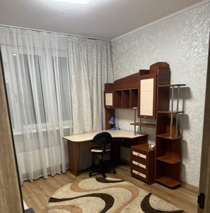 В детской комнате стоит раскладывающийся диван, компьютерный стол и шкаф.