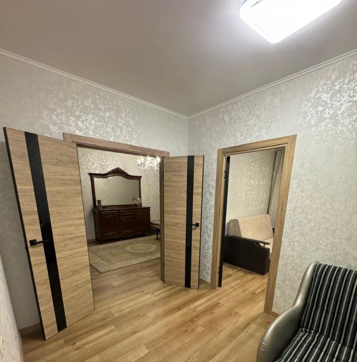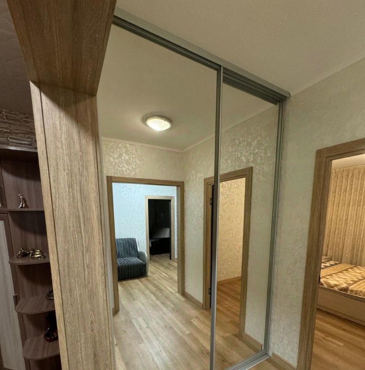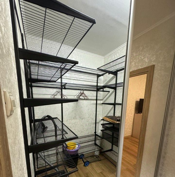 В квартире также есть гардеробная, новый пылесос, утюг, сушилка для белья. В коридоре стоит диван.
