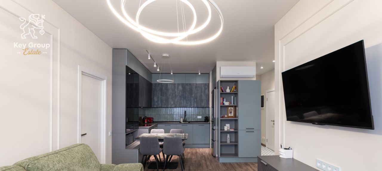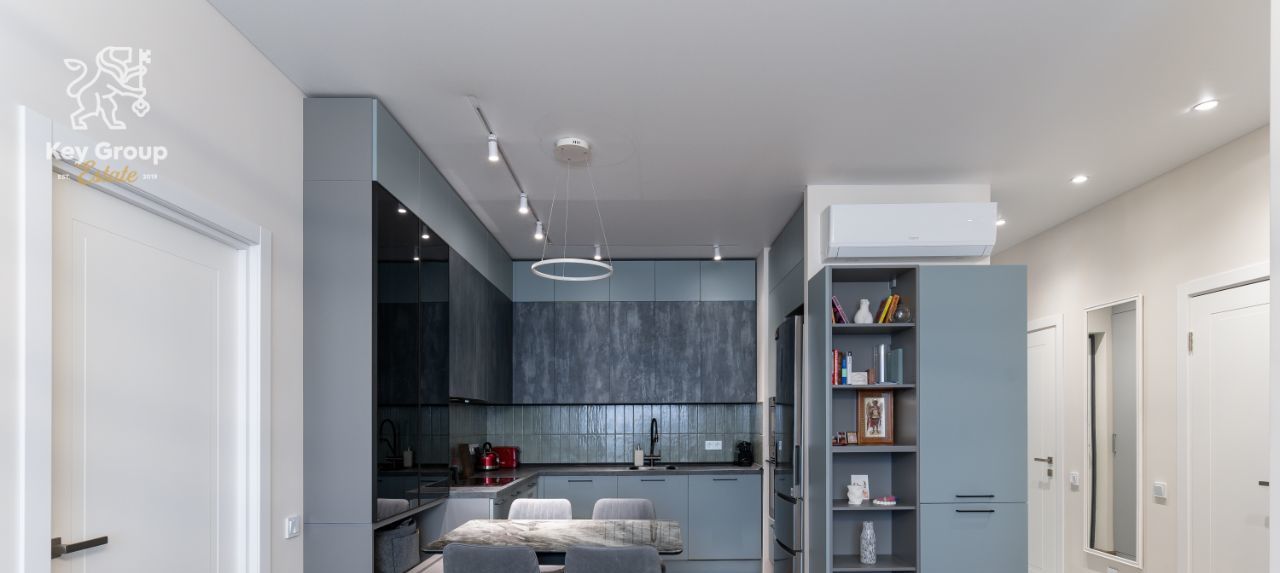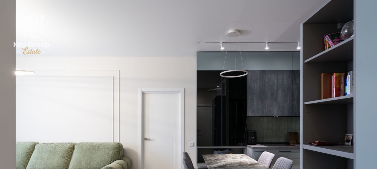 Центральное место занимает просторная кухня-гостиная 20 кв. м. элегантное пространство для частных ужинов, приёма гостей и размеренной городской жизни.