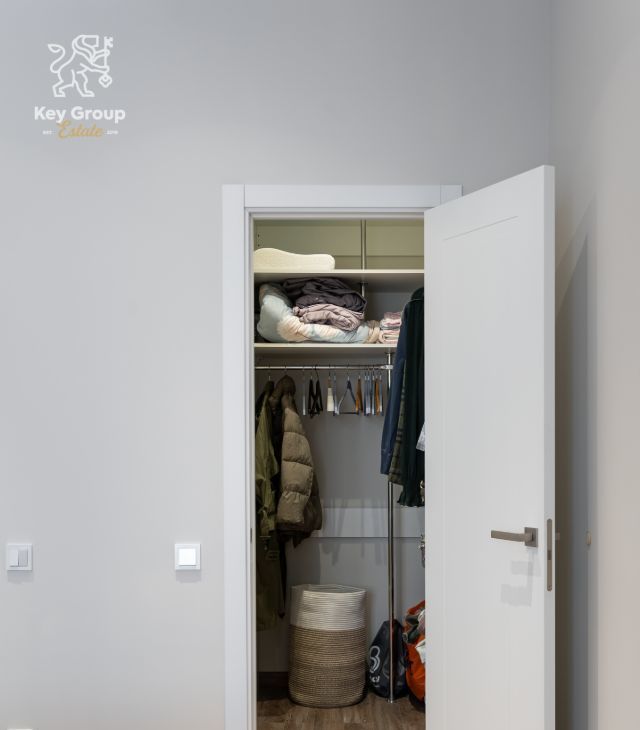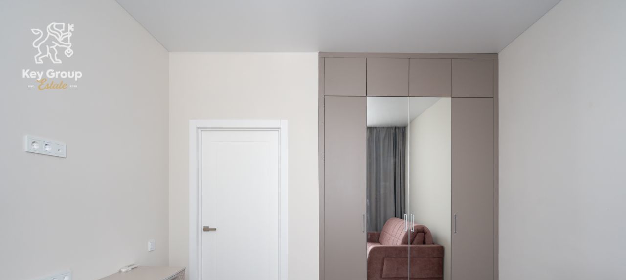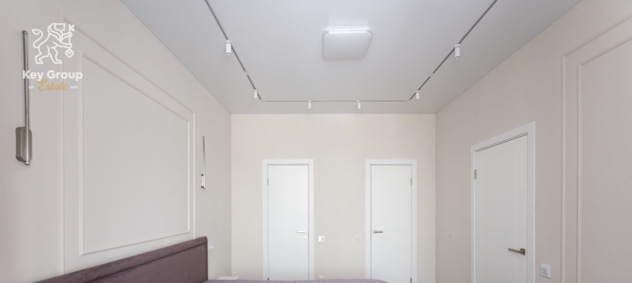 Одна из комнат - мастер-спальня, оснащённая собственной ванной комнатой и отдельной гардеробной , что создаёт формат личного пространства и комфорта.