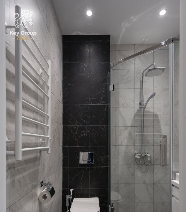 Дополнительно в квартире предусмотрен второй санузел с душевой кабиной, удобный для гостей или семьи а также отдельной гардеробной комнатой.
