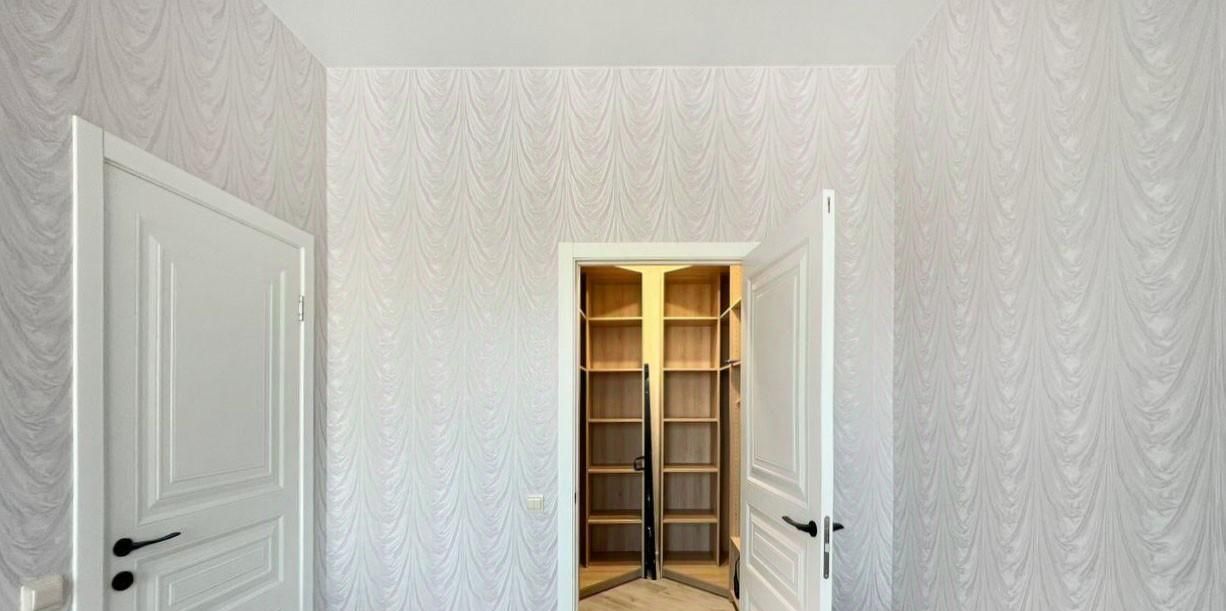 Вторая спальня ~15 м² — универсальная комната. Огромный встроенный шкаф-гардеробная во всю стену. Хранение одежды решено раз и навсегда. Идеально для ребёнка, гостевой комнаты или домашнего офиса. Яркая, уютная, с собственной атмосферой.