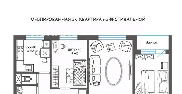 МЕБЛИРОВАННАЯ 3 к. КВАРТИРА на ФЕСТИВАЛЬНОЙ
