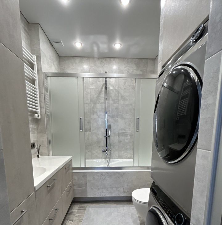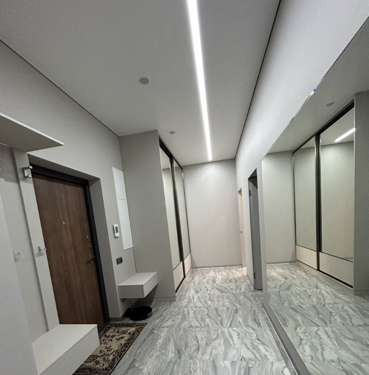 Высокие потолки, кондиционеры, теплый пол, несколько сценариев освещения, удобные системы хранения, панорамный вид открывающийся с 27 этажа, интерьер продуманный до мелочей, качественная мебель и техника - все для комфорта арендатора.