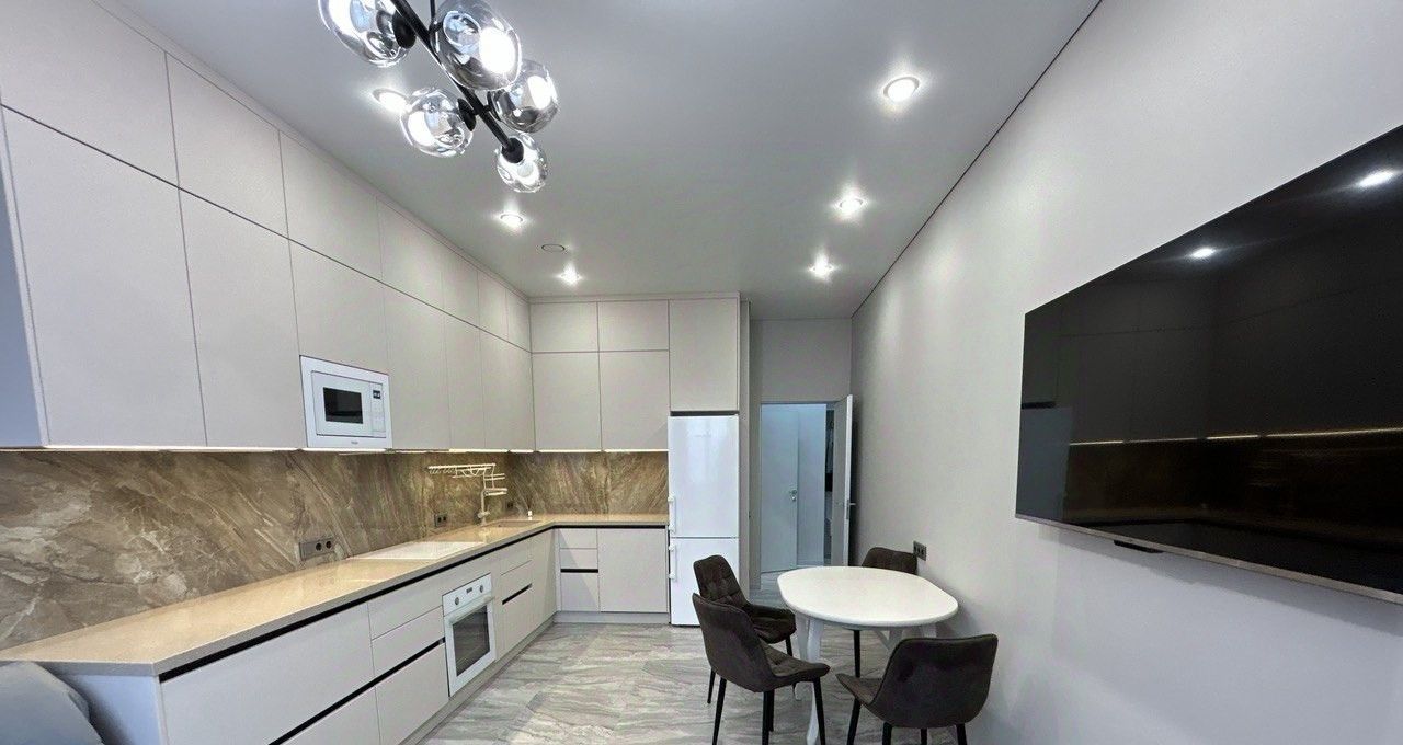 Евро трехкомная квартира с качественным ремонтом, сопровождающимся работой дизайнера и стильной мебелью. Общая площадь 79,5 кв.м, функциональная планировка: просторная кухня-гостиная, гостевая спальня с выходом на утепленную лоджию оборудованную под кабинет, мастер спальня , просторный холл с грамотно организованной системой хранения, гостевой санузел.