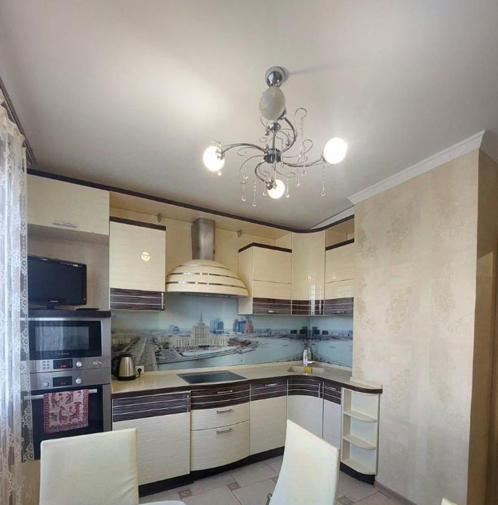 В квартире выполнен качественный евроремонт. Гостиная и две спальни обставлены современной мебелью, на кухне — стильный гарнитур. Из техники в вашем распоряжении: 3 кондиционера, холодильник, посудомоечная машина, телевизор и стиральная машина.
