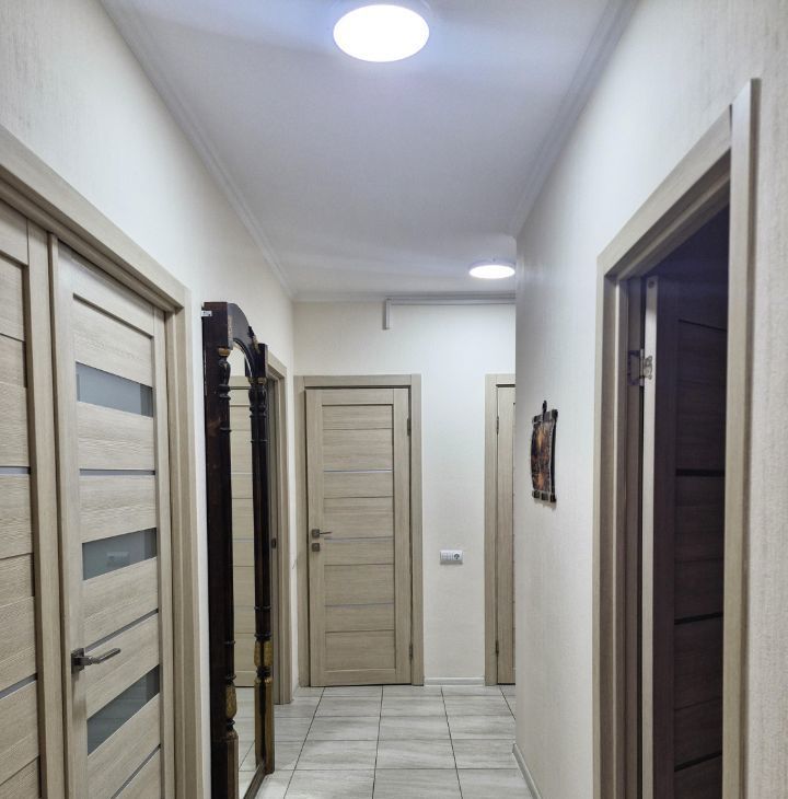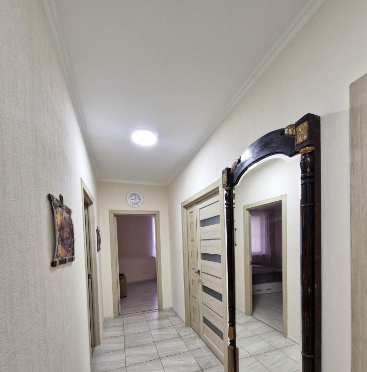 Квартира с тремя изолированными комнатами, раздельным санузлом и двумя большими гардеробными. Квартира полностью укомплектована всей необходимой мебелью и бытовой техникой.