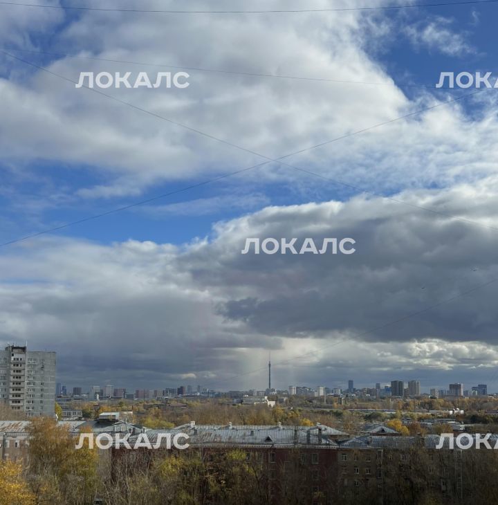 Квартира находится на 11 этаже панельного дома. Из окон открывается панорамный вид на Москву и Останкинскую башню. Есть застеклённая лоджия, выходящая во двор.