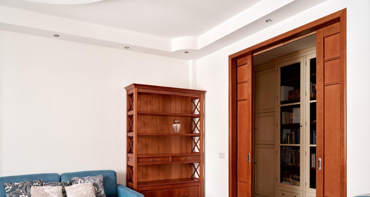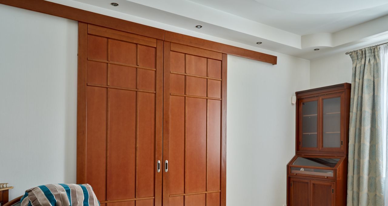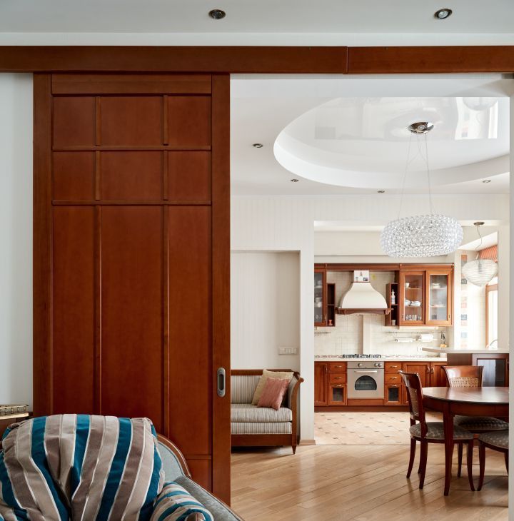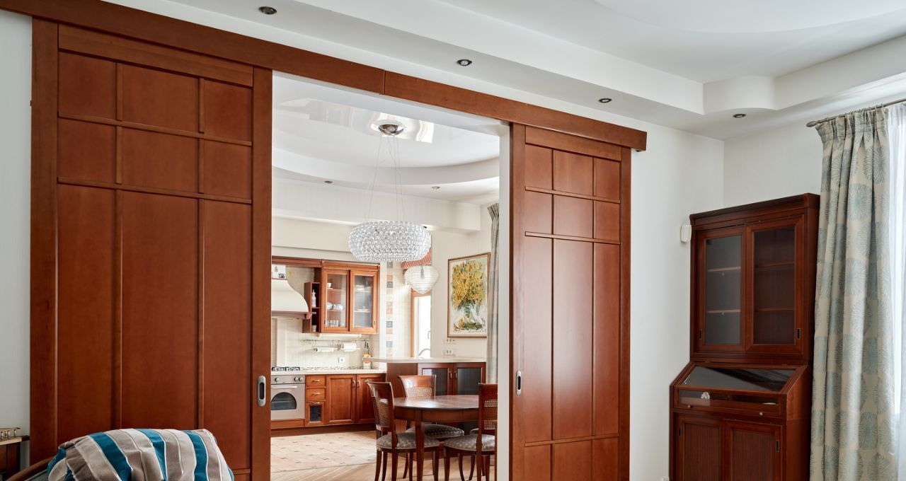 2. Большая спальня-гостиная: соединяется с кухней-гостиной огромными раздвижными дверями — можно открывать пространство в единый зал или закрывать для приватности.