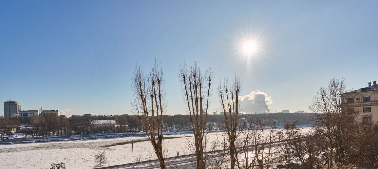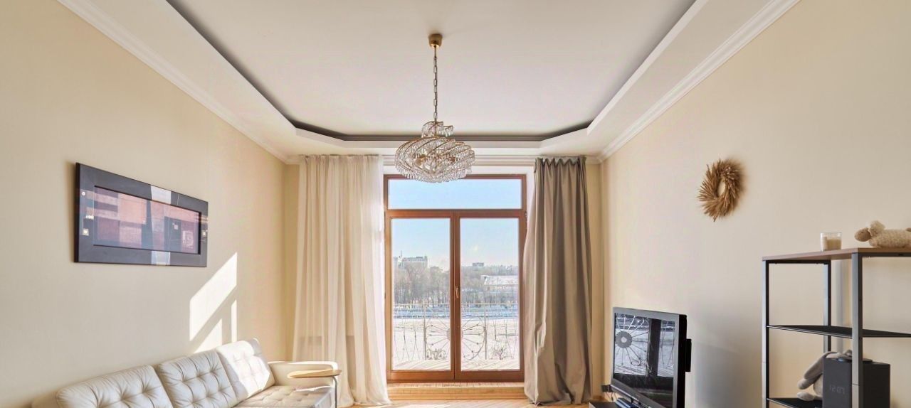 Спальня и просторный зал с панорамными окнами выходят на набережную и Москву-реку — наслаждайтесь утренним кофе с видом на воду.