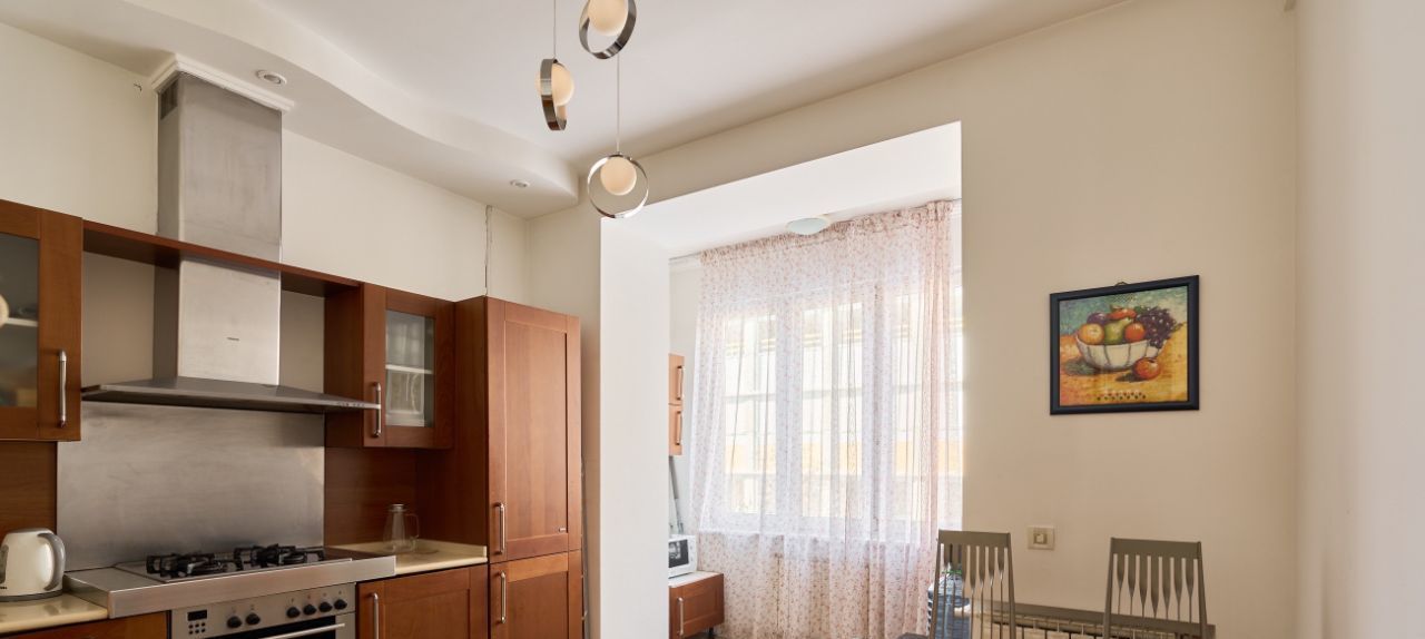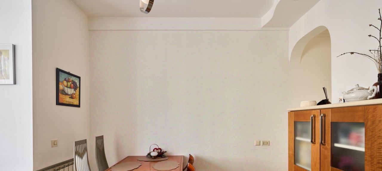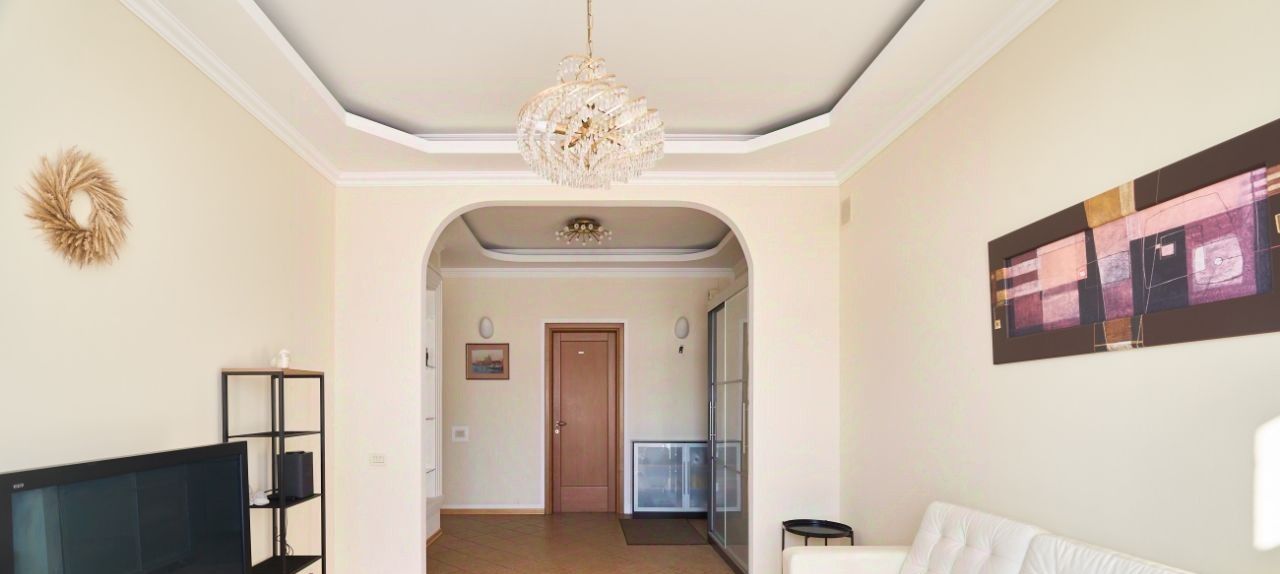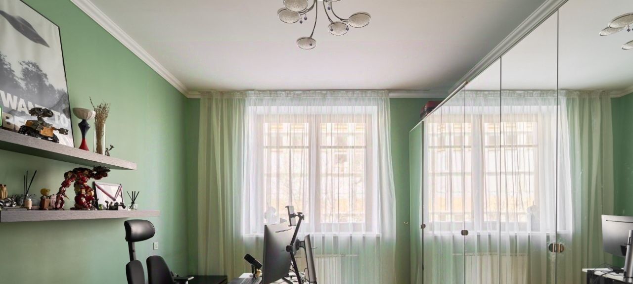 Три просторные гардеробные зоны обеспечат порядок и хранение. Квартира очень тёплая благодаря толстым стенам сталинки- классический уют.