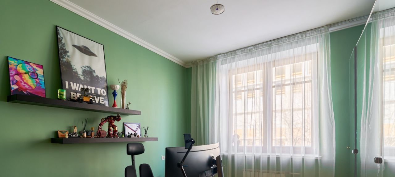 Кухня и комната свободного назначения выходят во двор — тихо и зелено, без городской суеты.