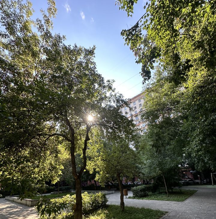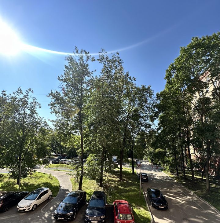Дом вдали от дороги , утопает в зелени, территория двора под шлагбаумом, парковочные места есть , в доме есть Дикси . Подъезд сквозной , с выходом во двор на парковку .