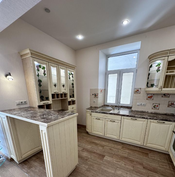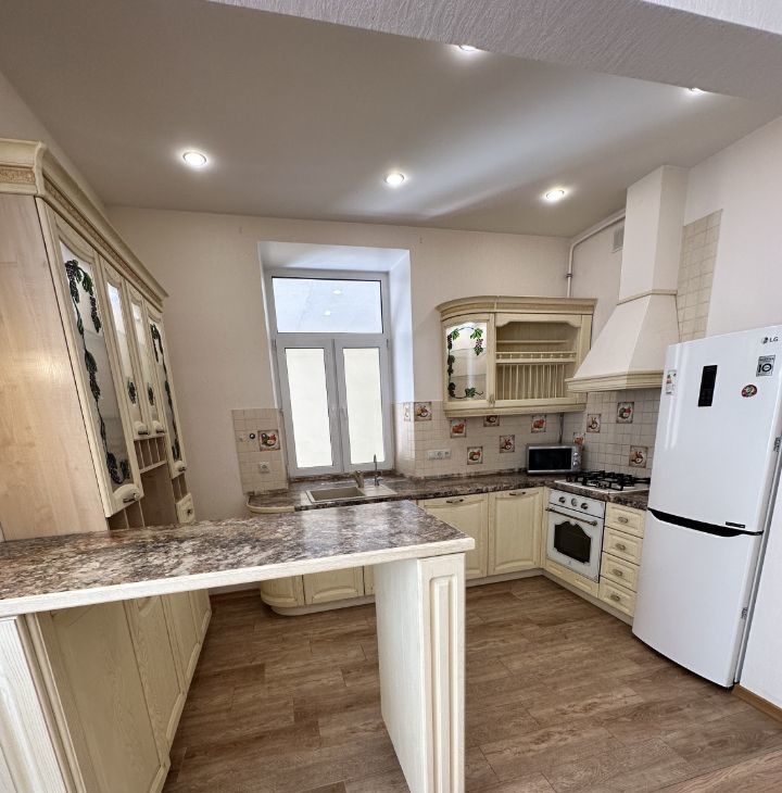 В долгосрочную аренду предлагается великолепная просторная квартира в сталинском доме с потолками 3 метра ! Высокий этаж на уровне четвертого этажа , распашонка .