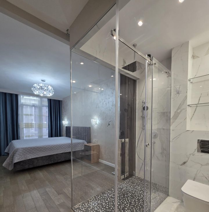 Трёхкомнатная дизайнерская квартира с Мастер-спальней с прозрачным санузлом и отдельной гардеробной! Одна комната свободного назначения, укомплектация обсуждается.