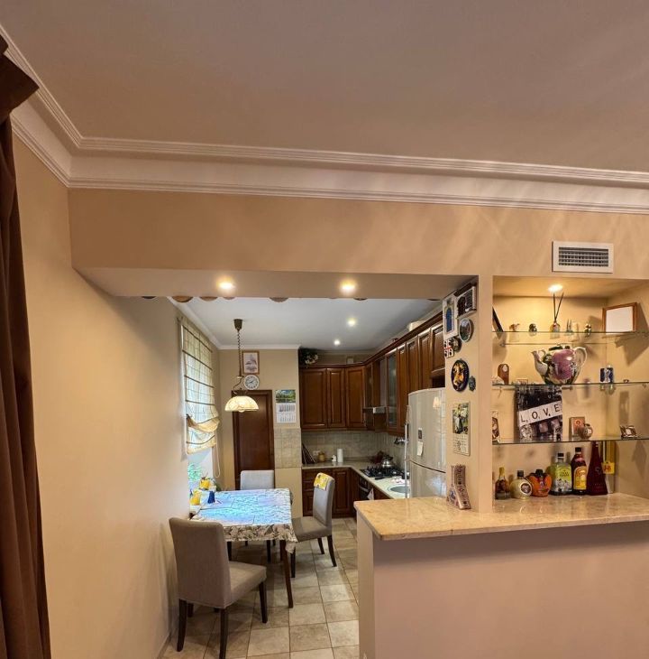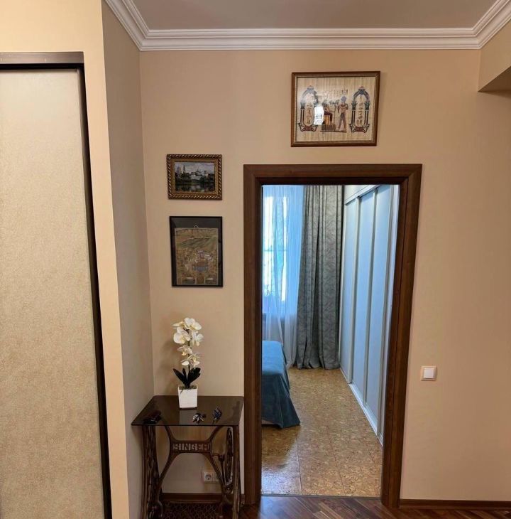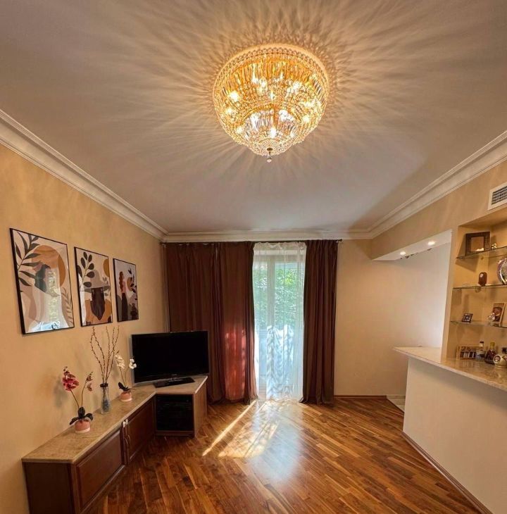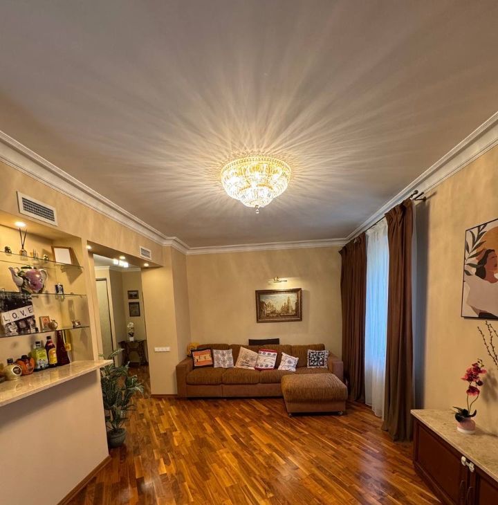 В квартире сделан качественный евроремонт. Комнаты просторные и светлые, окна выходят во двор, поэтому здесь всегда тихо и спокойно. В наличии вся необходимая мебель как на кухне, так и в комнатах. Кухня площадью 10 кв. м оборудована современной техникой: кондиционер, холодильник, посудомоечная машина и стиральная машина. В гостиной установлен телевизор. Совмещенный санузел с ванной комнатой.