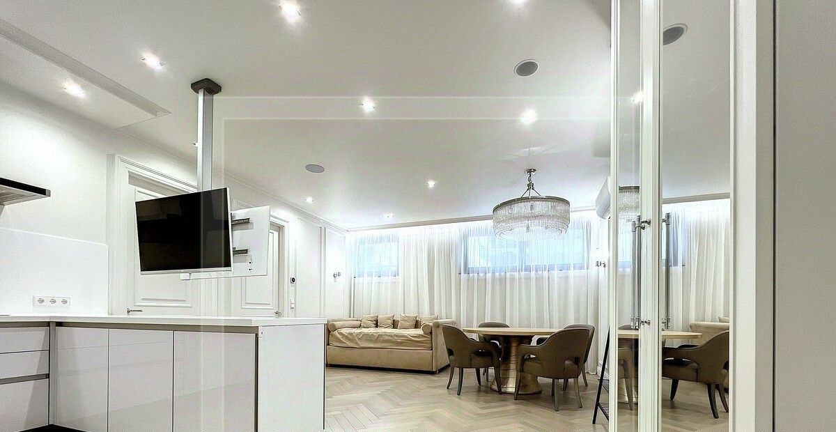 ID 45761. Стильная 3-комнатная квартира в доме deluxe класса на 27 квартир. Авторский ремонт в стиле современной классики. Интерьер оформлен в светлых тонах, стены декорированы молдингами, бытовая кухонная техника и премиальная сантехника Villeroy&Boch. Общая площадь: 69 кв. м. Планировка: уютная кухня-гостиная, 2 спальни с двуспальными кроватями, качественный санузел и холл. Дом отличается эксклюзивными фасадами с филигранной каменной резьбой, французскими окнами, эксплуатируемой кровлей, собственным садом и фитнес-клубом, дизайнерской отделкой всех общественных зон, подземным паркингом. Три корпуса высотой 4, 6 и 9 этажей образуют уютный внутренний двор с детской площадкой, местами для отдыха и небольшим садом.