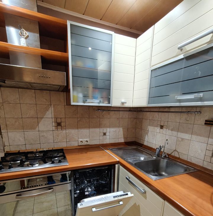 Современная, удобная мебель и техника (стиральная и посудомоечная машина, холодильник, плита, микроволновка).