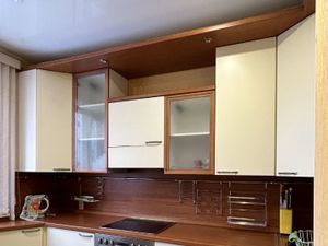 КУХНЯ: встроенная кухня, электрическая варочная панель AEG, кухонный стол, кухонный уголок холодильник INDESIT, телевизор SKYLINE.