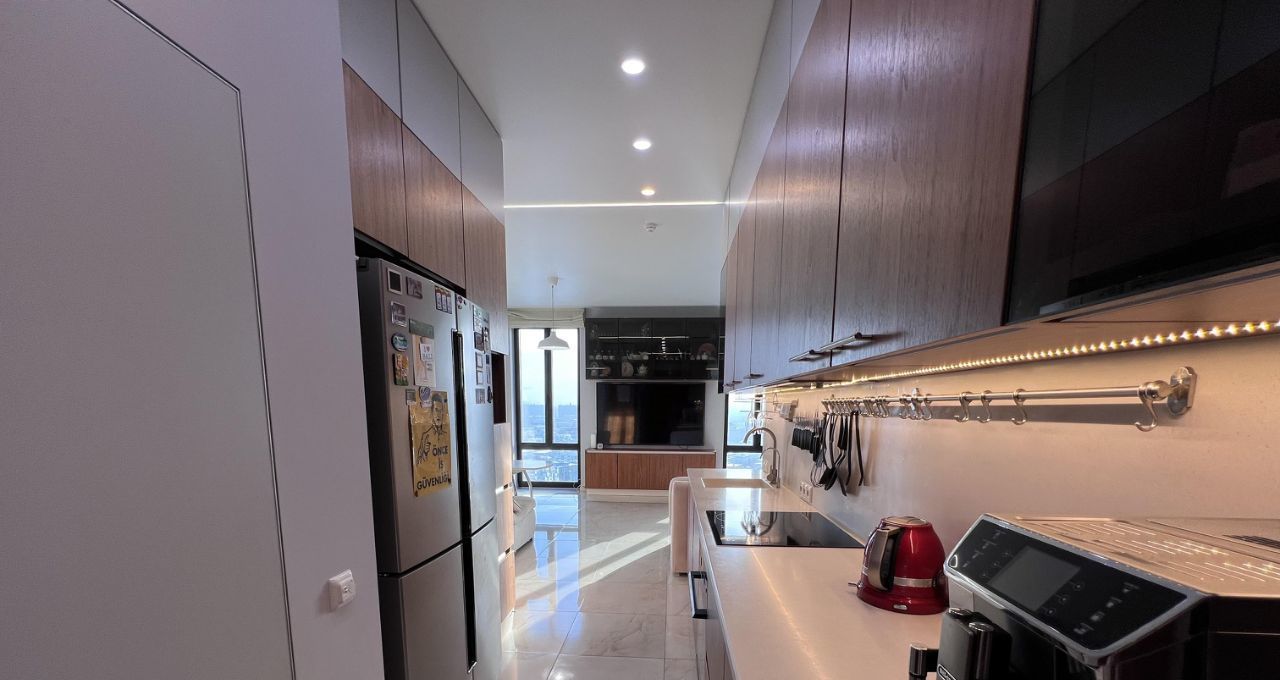 В квартире есть все необходимое для проживания, две изолированные спальни и кухня гостиная. Два санузла, сейф, постирочная, панорамный вид на город.