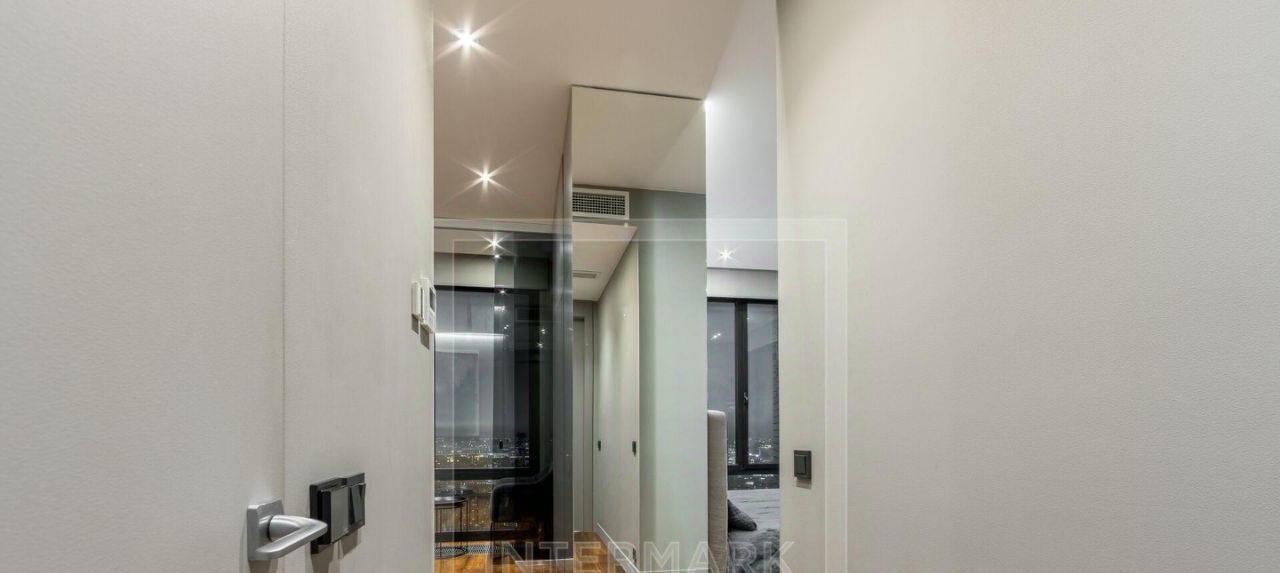 В квартире: С мебелью, М/место в подземном паркинге, Посудомоечная машина, Стиральная машина, Сушильная машина, Бойлер, Душевая кабина, Теплые полы, Спутниковое/кабельное телевидение, Видеонаблюдение, Охрана, Интернет, Видовая квартира, Можно с детьми, Вид на реку, Европланировка, Ванна, Интерьер в современном стиле, Консьерж, Кондиционер, Гардеробная комната, Лифт, Ремонт - дизайнерский, Кухонная мебель, Окна на улицу, Окна во двор