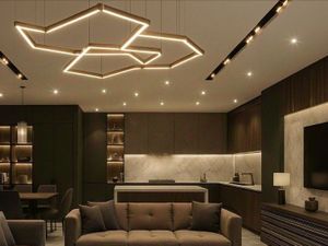 Планировка - кухня-гостиная, спальня с гардеробной и присоединенной к комнате теплой лоджией, большая детская 20 кв.м. (возможно использовать под кабинет), санузел с ванной и душевой кабиной, гардеробная, гостевой туалет, прихожая.