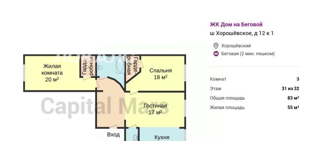 3-к кв. Москва Хорошевское ш., 12к1 (83.0 м²)