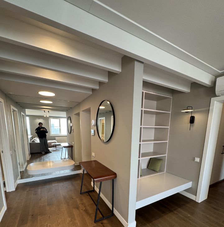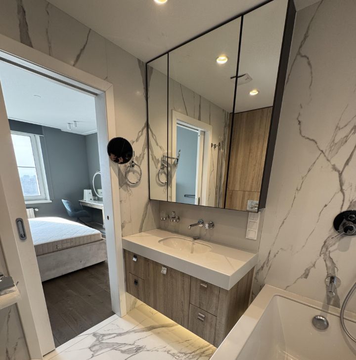 Сдается просторная квартира с дизайнерским ремонтом, дизайн и ремонт делались под себя. В квартире есть все, что душе угодно: вся бытовая техника, сплит система кондиционеров, быстрый интернет, хороший дорогой матрас Askona, просторный функциональный кабинет, гардеробная/кладовая, продуманная система хранения (много шкафов, ящиков, полочек) два санузла, телевизор 80 дюймов в гостиной, еще один 55 дюймов в спальне, мастер-ванная (доступ из спальни) шкафы все подсвечены изнутри, в ванной подсветки по периметру панелей, огромное зеркало во всю стену в прихожей, в общем в квартиру было вложено куча сил и средств.