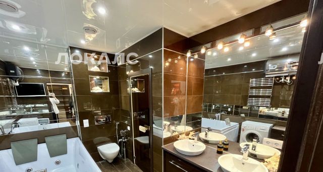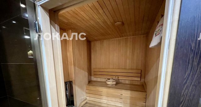 Особенностью этой квартиры является небольшая сауна, идеальная для отдыха и релаксации.