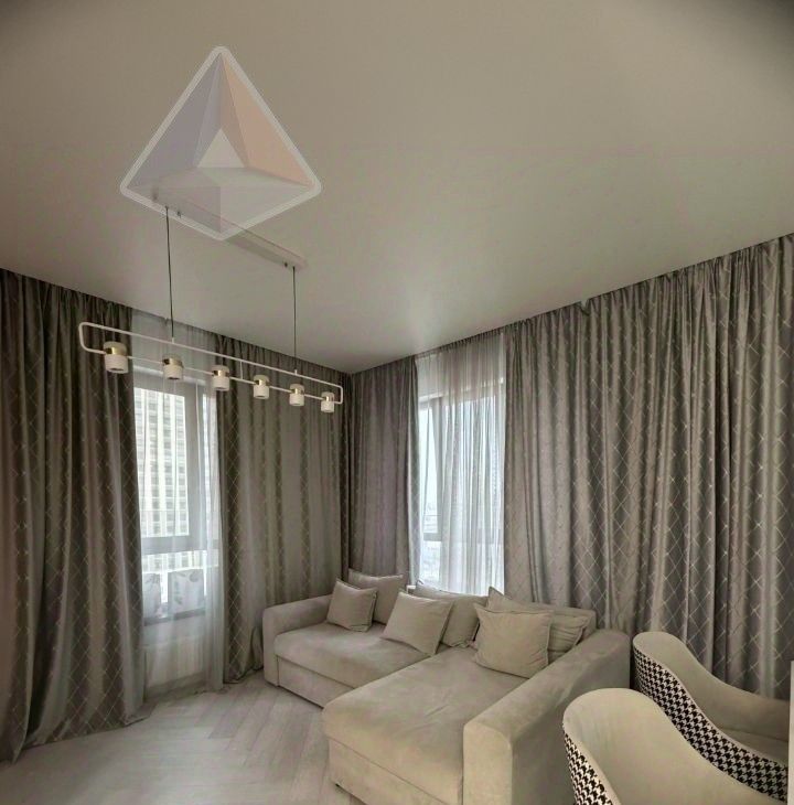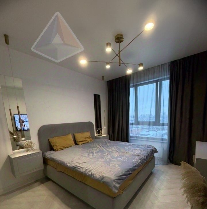 Просторная квартира 67,4 м² на 9 этаже (высота потолков 2,85 м): евро-планировка с просторной кухней-гостиной 8,7 м² и изолированными спальнями (жилая площадь 50 м²), совмещённый санузел. Дизайнерский ремонт, вся мебель под заказ — новая и функциональная. Полный комплект техники: посудомоечная машина, индукционная плита, духовой шкаф, холодильник, микроволновка, вытяжка, стиральная машина, кондиционер, телевизор, Wi-Fi. Квартира готова к заселению — заезжай и живи.
