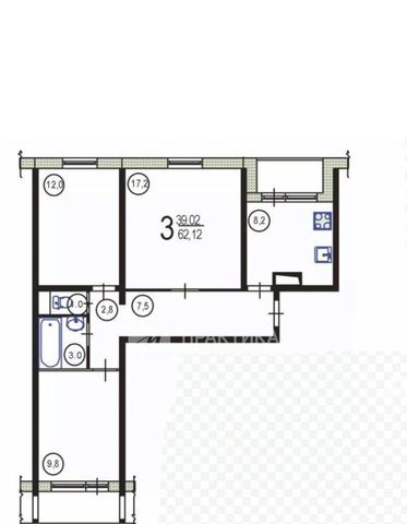 Всего 3 комнаты, два остекленных балкона, общая площадь 62 кв.м (жилая площадь 39 кв.м).