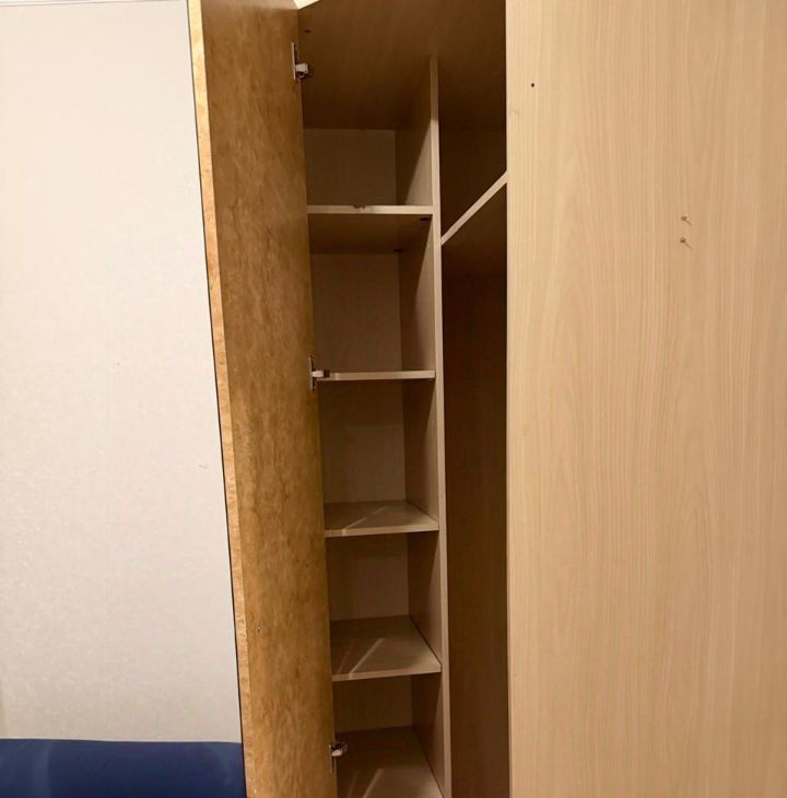 Кухня оборудована всем необходимым: холодильник, плита, обеденный стол и стулья. Из кухни выход на балкон, где можно насладиться свежим воздухом. В гостиной установлен телевизор и удобный диван, а также имеется шкаф для хранения вещей.