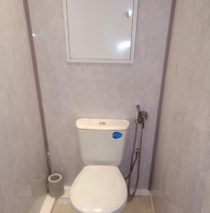 В спальне просторная кровать и вместительный шкаф. Ванная комната и туалет раздельные, оформлены в светлых тонах.