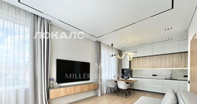 -Просторная кухня-гостиная (24,1 м3) с тремя большими окнами, что в дневное время делает пространство светлым и невесомым.;