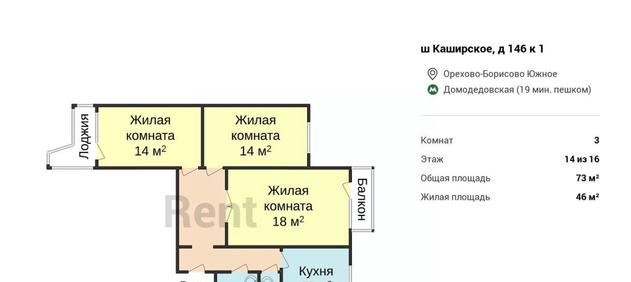 3-к кв. Москва Каширское ш., 146К1 (73.0 м²)