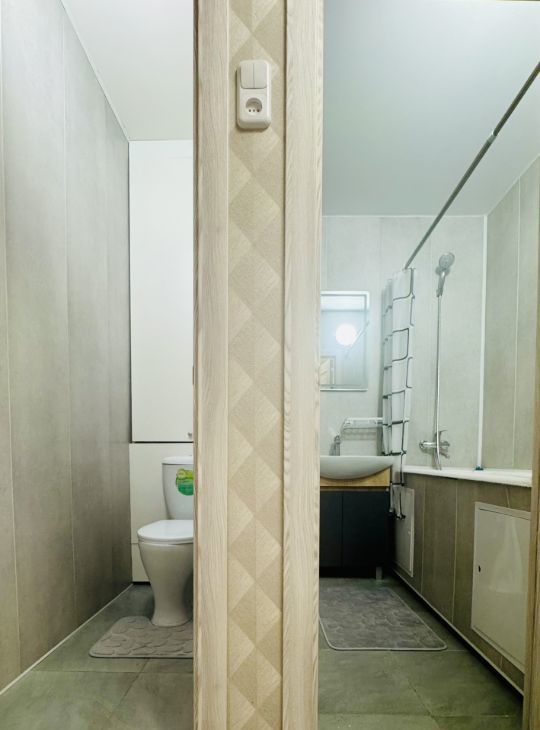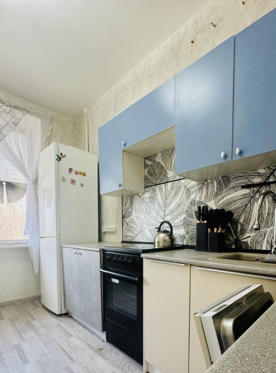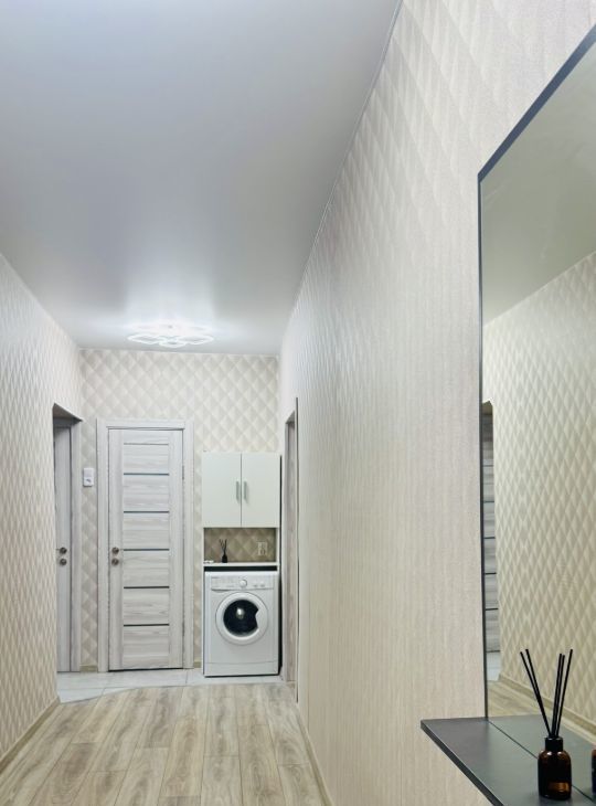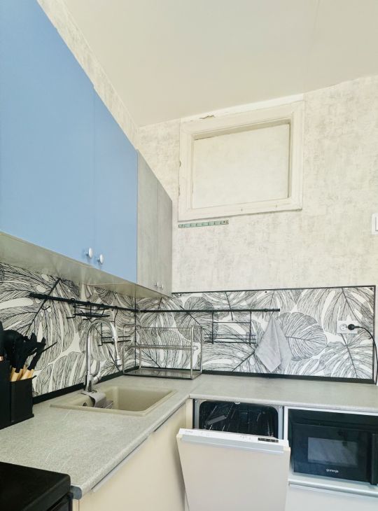 В квартире сделан свежий ремонт. Светлые комнаты с окнами, выходящими во двор, создают уютную атмосферу. На кухне площадью 10.5 кв. м есть вся необходимая мебель, а также техника: холодильник, посудомоечная машина и стиральная машина. В гостиной установлен кондиционер и телевизор. Ванная комната оборудована чугунной ванной.